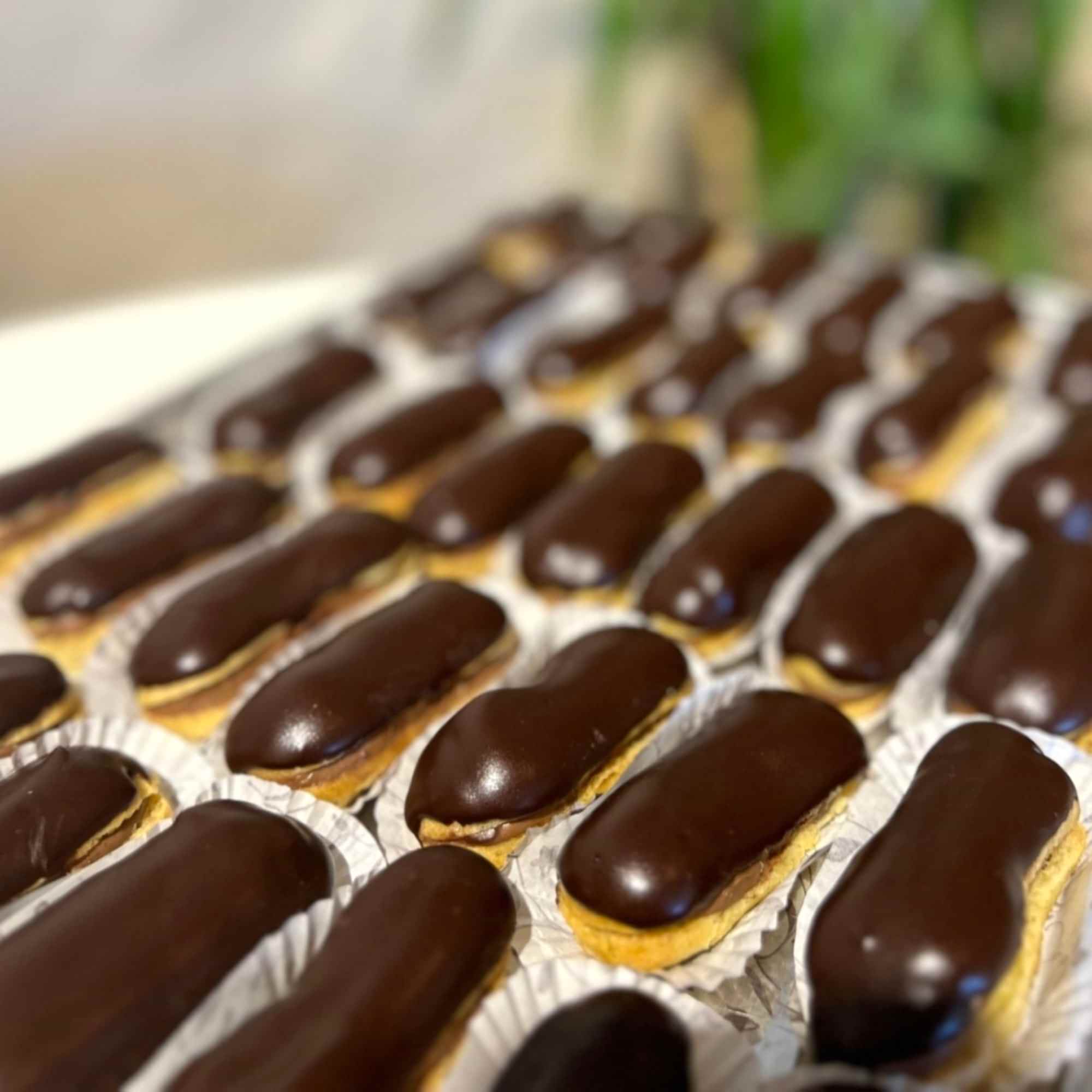Eklerlerin üzerine pudra şekeri serpebilir ya da çikolata sosuyla dekore edebilirsiniz. Soğuttuktan sonra servis edin.